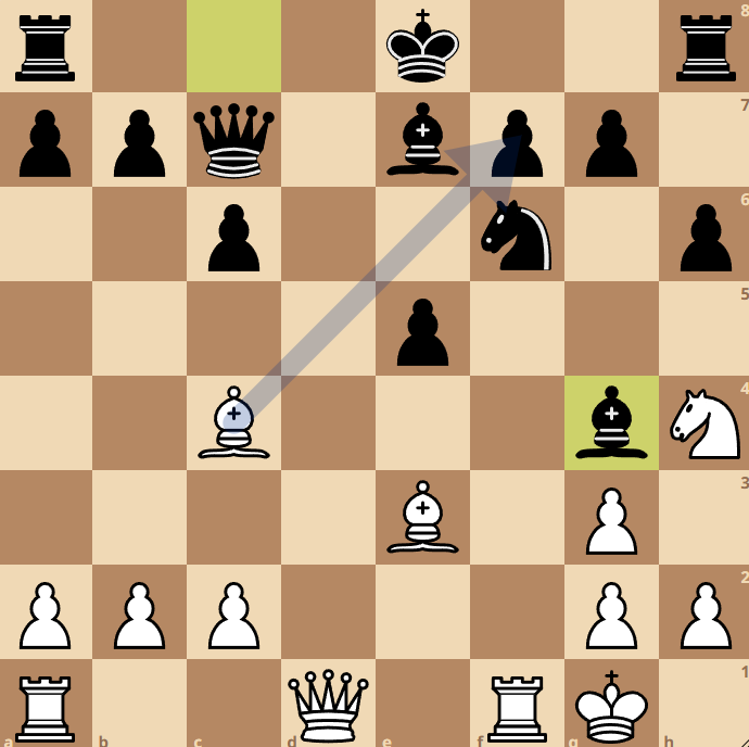 volgt 15. P xg6+ gevolgd door 16. Pxh8+) en wit won direct de loper terug met 15. Dxg4. Abel