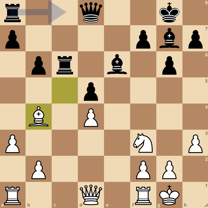 Lina zag dat na 42…Txe1! 43. Kxe1 de witte koning geen velden meer heeft en zette haar tegenstandster