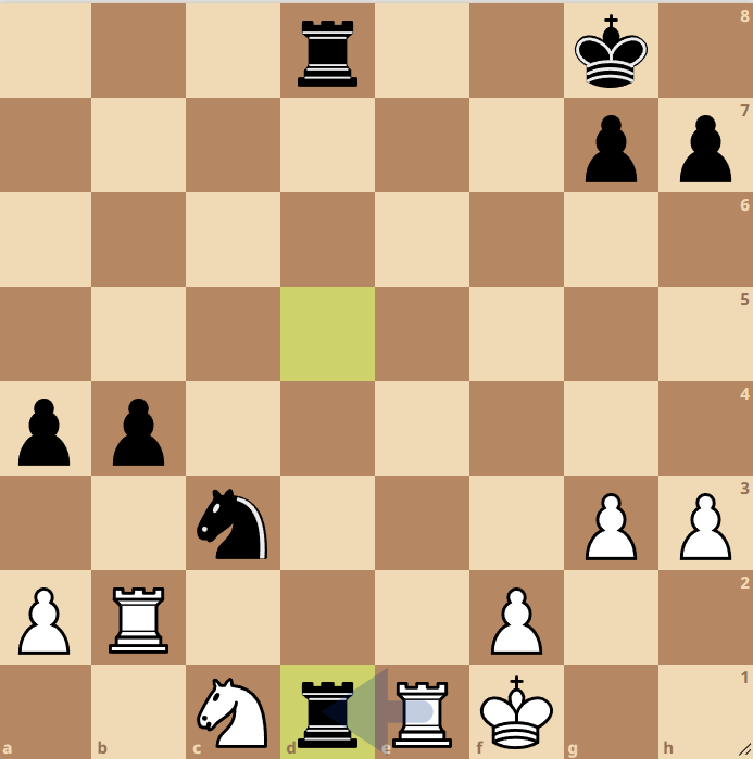 tijdnoodfase begon Lina weer te pushen voor de winst. Lina heeft hier net het sterke 41…Td1! gespeeld