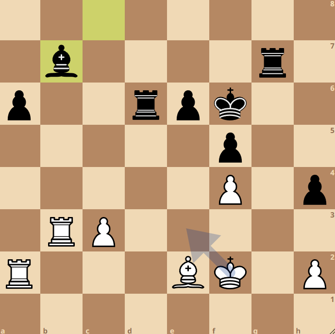 Zwart dreigt nu 45…Tg2+ en dat moet wit voorkomen. De beste zet hier is 45. Ke3 en het is