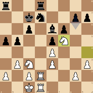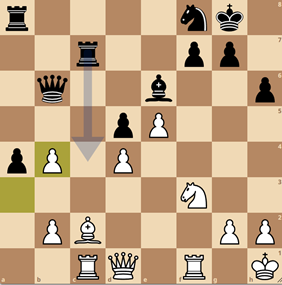 Echter, in plaats van 17…exd4 had zwart 17… Txb2! kunnen spelen, en omdat deze zet ook de witte loper aanvalt wordt het opeens heel double-edged. Wit kan ook hier een stuk voorsprong houden als hij materialistisch is en 18. Lxc6 spelen, maar dan krijgt zwart nu na 18..exd4 19. Ld5 dxc3 wel een hele gevaarlijke vrijpion (en 3 pionnen voor het stuk) en is het waarschijnlijk zwart die aan winstpogingen kan gaan denken.