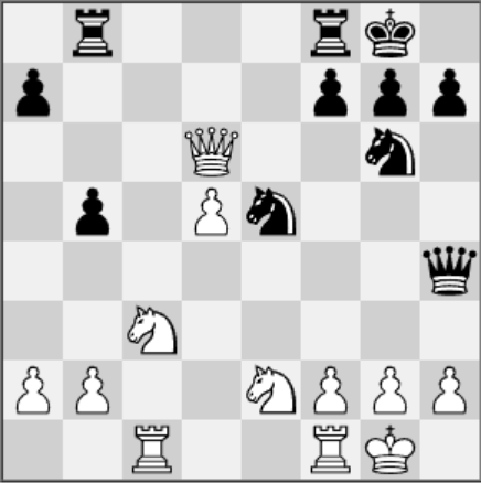 Zwart heeft echter in plaats van Tb6 Tfd8 en na Dc7, Tbc8 moet de dame van die diagonaal af met bijvoorbeeld Dxa7. En dan blijkt zwart de torens niet eens bij de aanval te hoeven betrekken, want zwart wint daar met… Pf3+! gxf3, Dh3! en Ph4 volgt op de volgende zet en wit moet zijn dame geven (Dd4-xh4) om mat te voorkomen. In de partij volgde in plaats van Tfd8, b4 dat tegen vriendje stockfish de winst zou hebben weggegeven.
