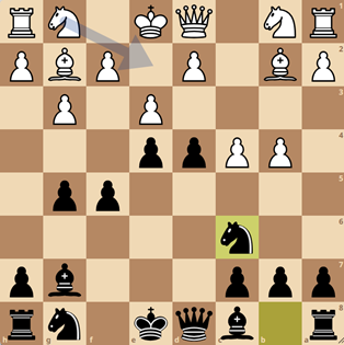 Zelf mocht ik de openingsscore op het bord zetten. Van tevoren had ik nog eens naar mijn statistieken gekeken en zag ik dat al mijn 5 zwartpartijen extern (KNSB en HSB) remise had gespeeld en al mijn 3 witpartijen had gewonnen. Nu speelde ik weer met zwart en deze reeks wilde ik graag doorbreken. Toen mijn tegenstander Joost Stoker op bord 4 mij de kans gaf om een zijvariant te kunnen spelen met 3…g5!?, een stelling die ik een paar jaar geleden wel eens goed had geanalyseerd, wist ik dat we in ieder geval ergens terecht zouden komen waar de kans op remise vele malen kleiner was dan dat er een beslissing zou vallen. Joost was gelukkig ook niet op de hoogte van de finesses van deze zijvariant en deed in de eerst tien zetten toch wel een paar serieuze concessies aan zijn stelling: