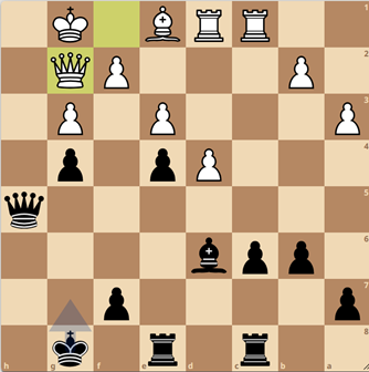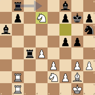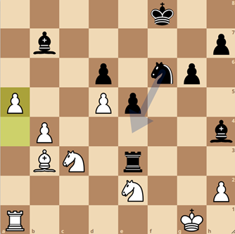In deze stelling speelde tegenstander Kees van de Does 28..Pxd5? – en het vraagteken is niet omdat deze zet een stuk verliest, maar er worden wel gedwongen veel stukken geruild en in het resterende eindspel zijn de witte pionnen op de damevleugel een stuk sterker dan de zwarte centrumpionnen. Na nog enkele spannende verwikkelingen gaven die pionnen inderdaad de doorslag en kon Lina een belangrijk punt binnenhalen voor ons team.