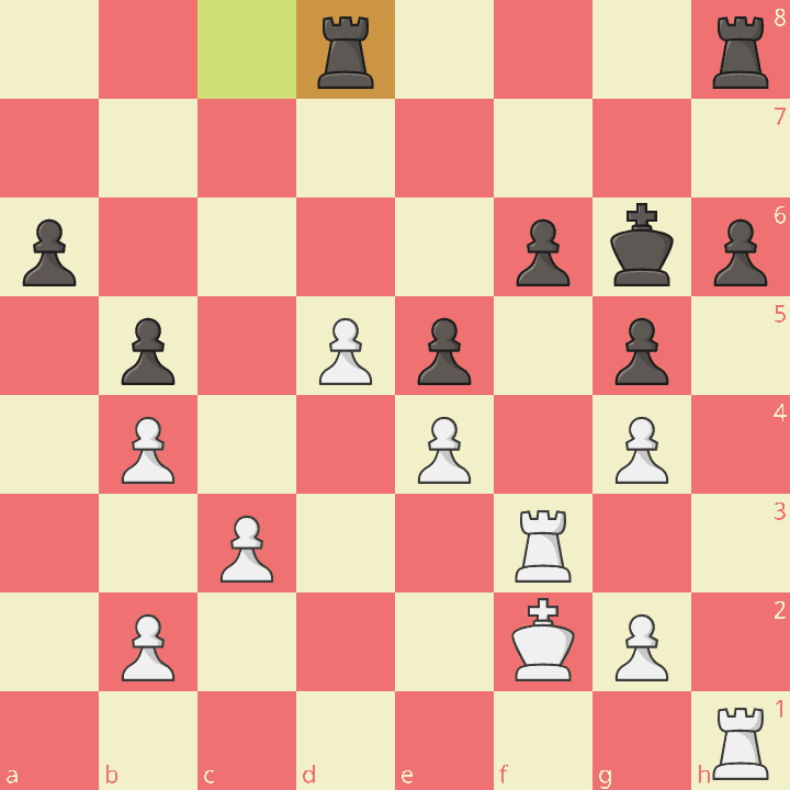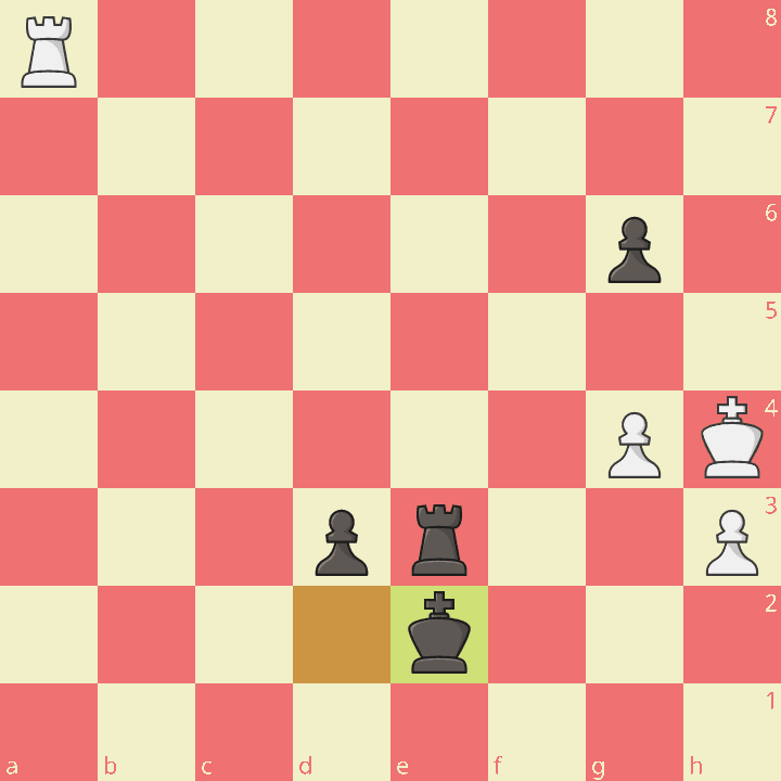 Wit moet de toren offeren via 61.Kg5! d2 (61…Txh3 62.Kxg5 met hetzelfde idee) 62.Ta1! (62.Ta2 Td3!–+) d1=D 63.Txd1 Kxd1 64.Kxg6 Txh3, omdat wit net op tijd is voor remise in het eindspel toren tegen pion. Helaas was het logische 61.Rd8 niet voldoende voor remise na 61…d2: de zwarte koning staat te dicht bij de pion (bijv., 62.Txd2+ Kxd2 63.Kg5 Te5+ 64.Kxg6 Ke3!).