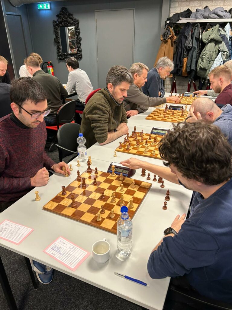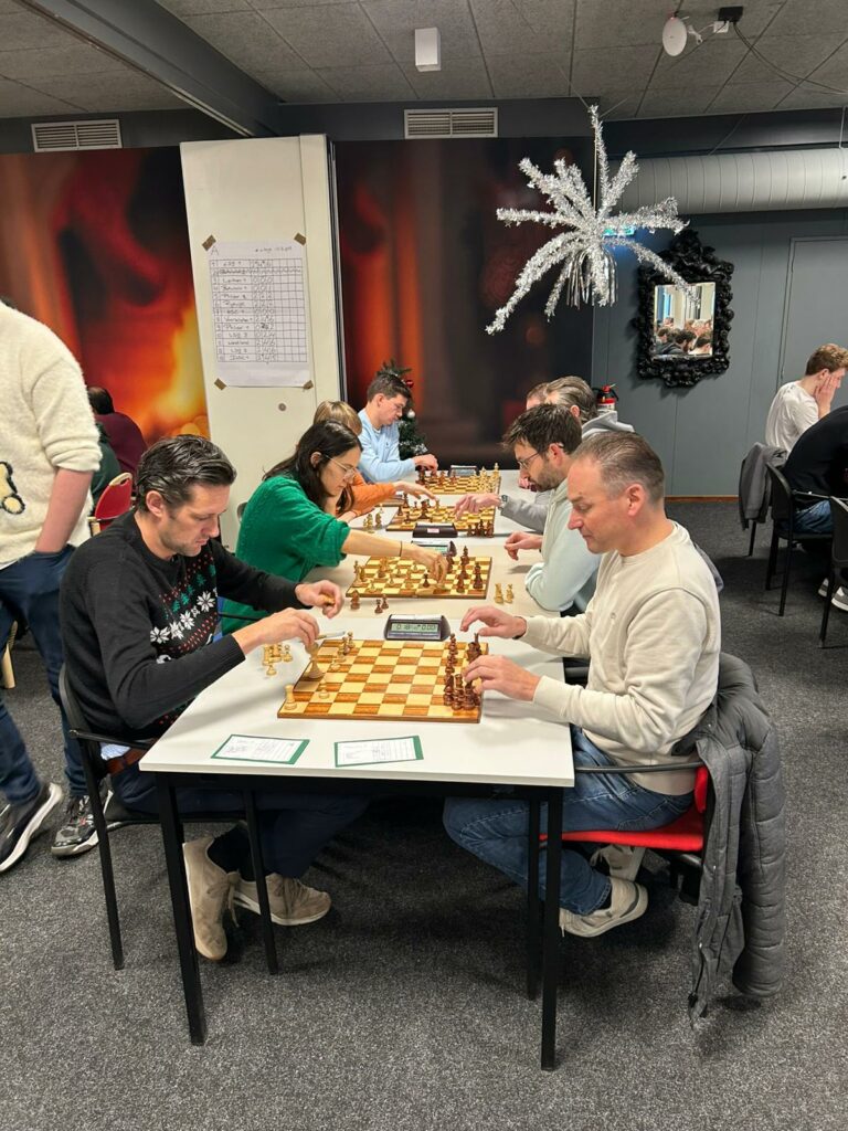 Deze periode kent vele goede tradities, en het Oliebollentoernooi in Leiden op de laatste zaterdag van het jaar is er zeker een van. 25 teams uit de Leidsche Schaakbond en 14 teams uit de Haagse Schaakbond gingen de strijd met elkaar aan. Vanuit Delft waren we voor de 10e keer van de partij (voor het eerst in 2014, en sindsdien altijd met minimaal 1 en maximaal 4 teams – in 2020/2021 waren er geen edities). Dit jaar deden de Delftenaren weinig voor elkaar onder: met gemiddeld 2 oliebollen per persoon werd een nette, edoch niet spectaculaire, score neergezet.